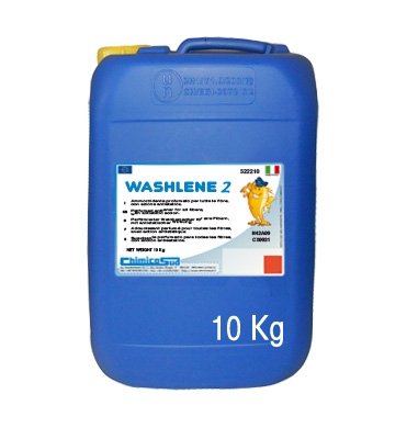 WASHLENE.2: Agente per la pulitura gentile in acqua di tessuti (sistema wet cleaning), con speciale azione fibroprotettiva sui delicati. WASHLENE .2 é attivo contro lo sporco anche con blanda azione meccanica di lavaggio, ha un'ottima azione ammorbidente e antinfeltrente, é efficace contro molti tipi di macchie ed é particolarmente delicato sulle fibre, protegge le fibre dei tessuti, ravvivando i colori. WASHLENE .2 é particolarmente indicato per la pulitura in acqua di una buona percentuale di capi di abbigliamento che normalmente vengono puliti a secco. Si ottengono così risultati preferenziali in pulizia, freschezza e vivacità di colori. Può essere usato con qualsiasi sistema di lavaggio conosciuto, purchè l'azione meccanica per i capi delicati sia ridotta del 90 %. Con WASHLENE .2 é possibile lavare anche a freddo (solubilità totale). Confezionato in fustini da 10 Kg.