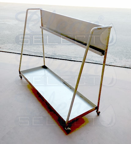 Carrello porta pompe e prodotti, capacita' di 4 taniche da 25L, e di piastra per l'attaco di 10 pompe detersivo/prodotti. Costruito interamente in acciaio INOX. Completo di 4 ruote girevoli. Carrello proveniente da esposizione vendite. Presenta alcuni segni dovuti al trasporto e/o movimentazione.