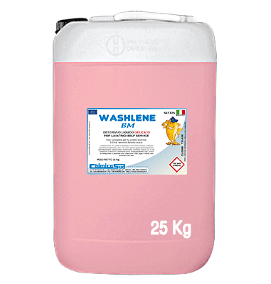 WASHLENE BM detersivo liquido delicato per basse temperature e per fibre: lana, misto-lana, seta, etc. Studiato per il lavaggio ad acqua con lavatrici "self-service" e dosaggio con pompe automatizzate grazie alla sua ottima fluidità. Confezionato in taniche in plastica da 25 Kg.