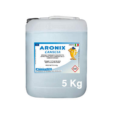 ARONIX CAMICIA: finissante speciale per camicie con effetto apprettante ed antipiega. IDEALE PER LA STIRATURA MECCANIZZATA. Confezionato in taniche da 5 Kg