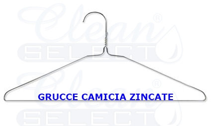 GRUCCE CAMICIA ZINCATE: è una gruccia SPECIALE per CAMICIA in filo di ferro zincato, larghezza 46 cm, più larga per le spalle, più larga per il colletto, molto leggera, senza tacche all'estremita'. Confezionata in scatole da 500 Pezzi.