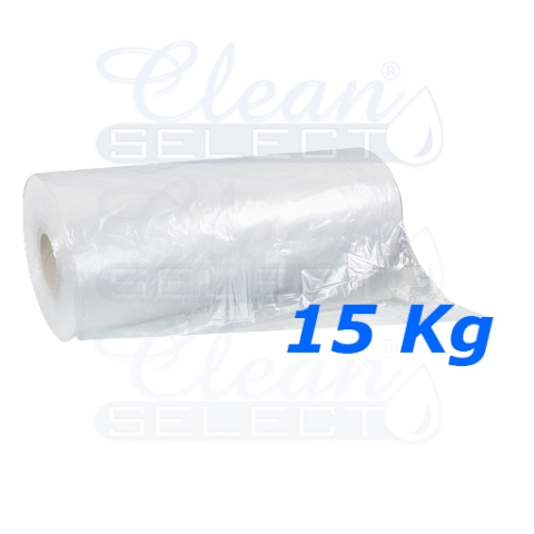Bobina polietilene tubolare neutro per il confezionamento dei capi, larghezza: 620 mm, rotolo da: 15 Kg, metri per rotolo: 672, spessore: 20...22 µm.