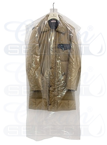 Sacchetti sagomati copriabiti per cappotti, lunghezza 120 cm, scatola da 10 Kg. Circa 300 pezzi per scatola.